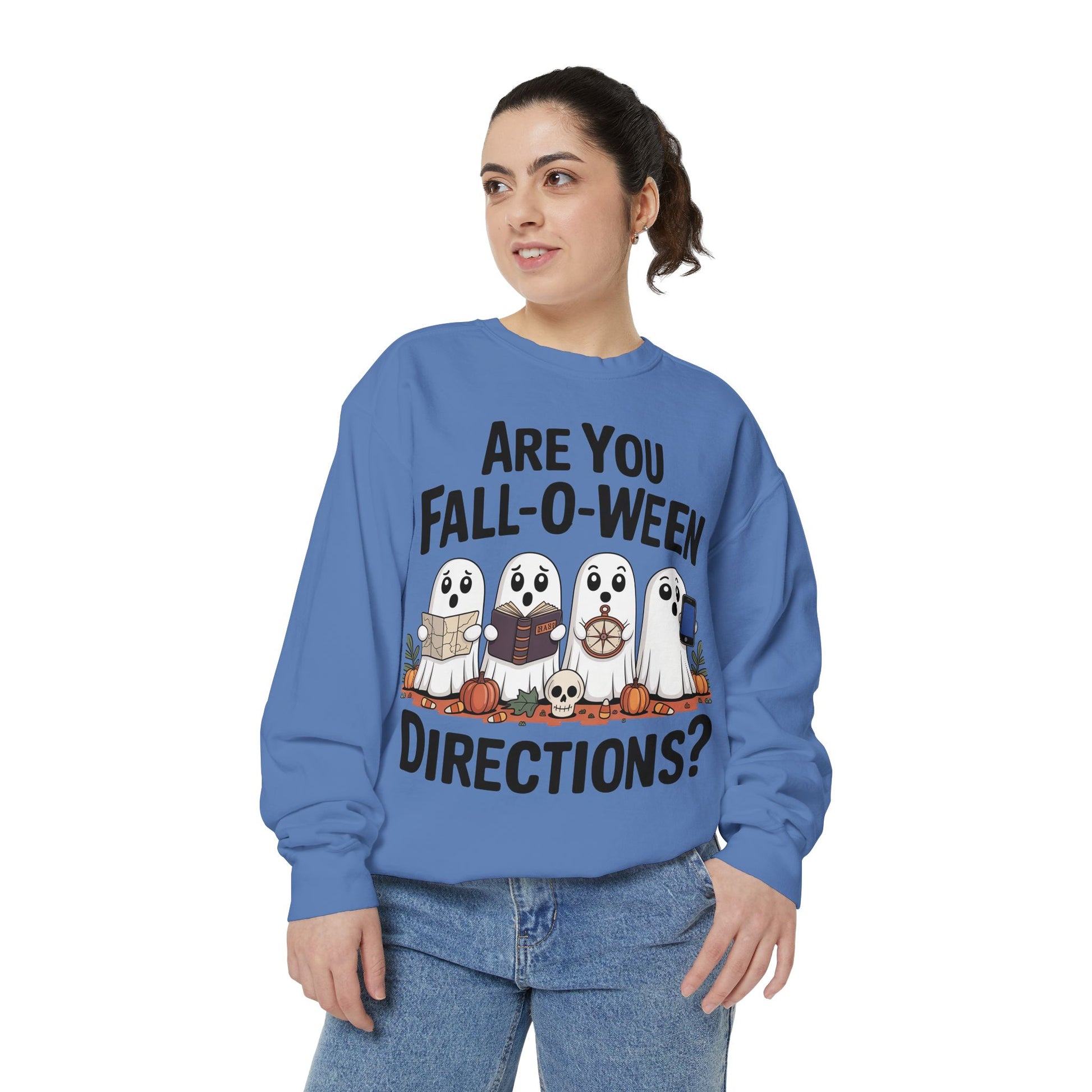Embrace the spirit of the season with this cozy unisex garment-dyed sweatshirt, perfect for those crisp autumn days. Featuring playful ghost graphics and a whimsical slogan, it adds a touch of fun to your fall wardrobe. This relaxed-fit sweatshirt is crafted from soft cotton and polyester, giving it a luxurious feel that keeps you comfortable while you enjoy pumpkin picking or Halloween parties. Ideal for anyone who loves to celebrate autumn, this piece is perfect for friends, family gatherings, or cozy nights at home. Great for Halloween, Thanksgiving, or any casual fall occasion!