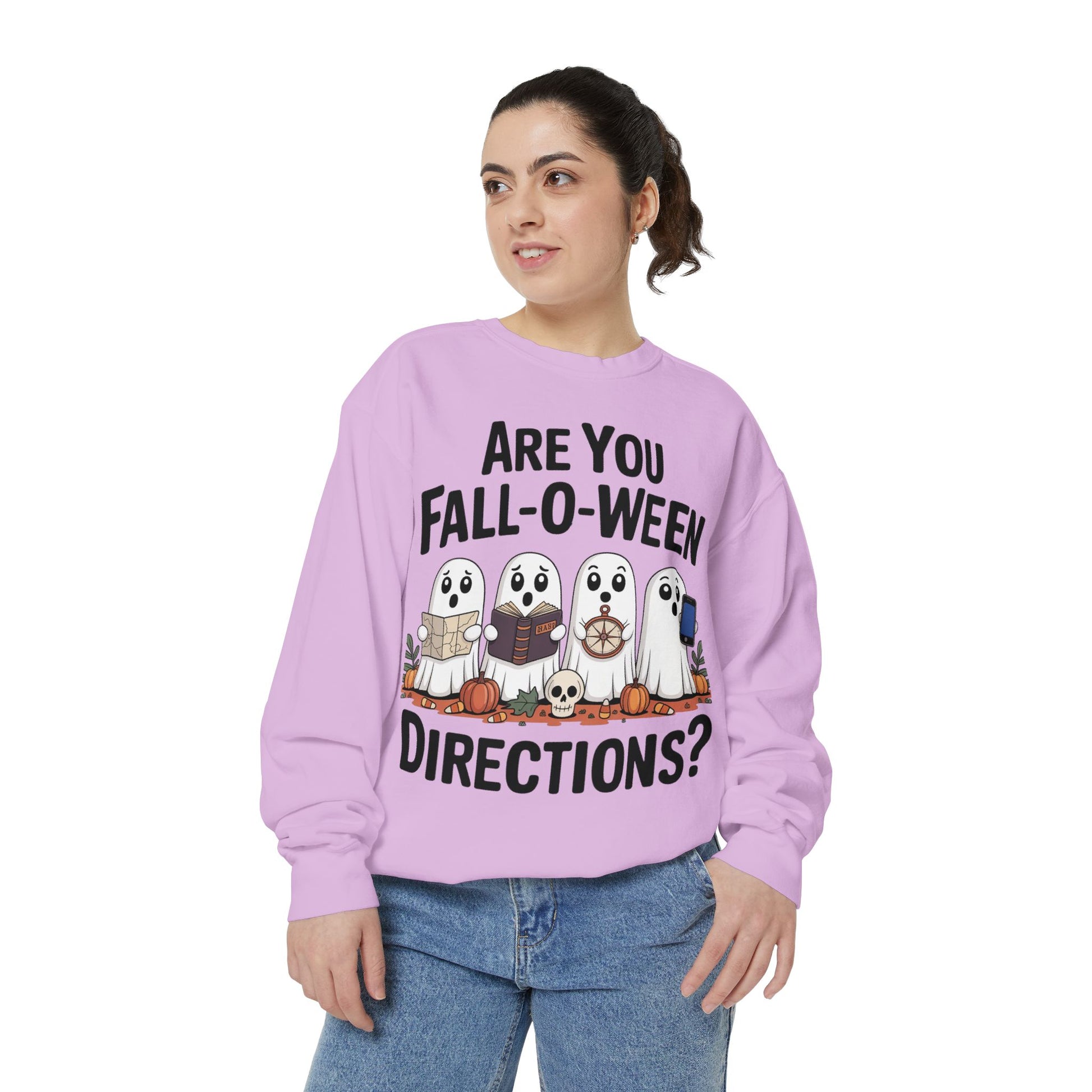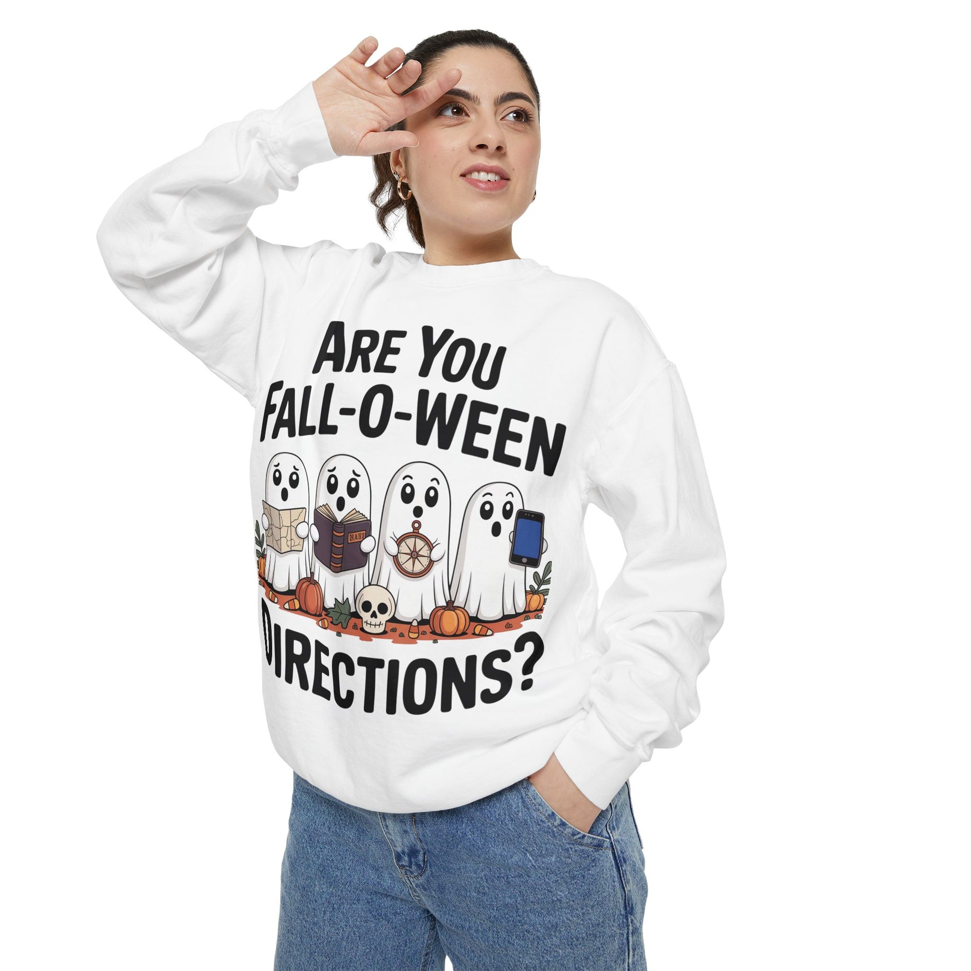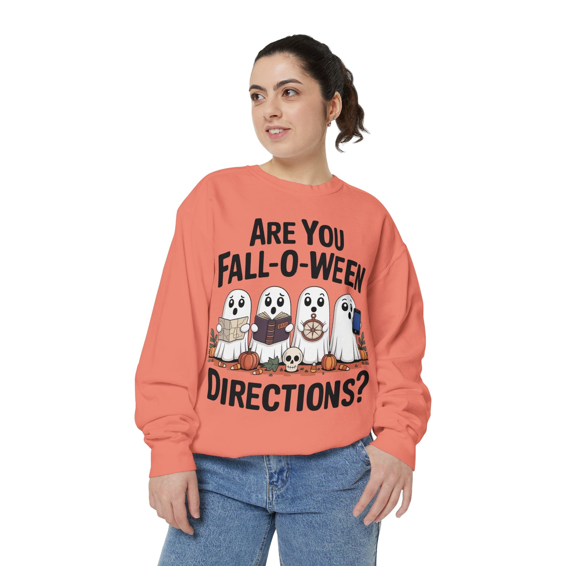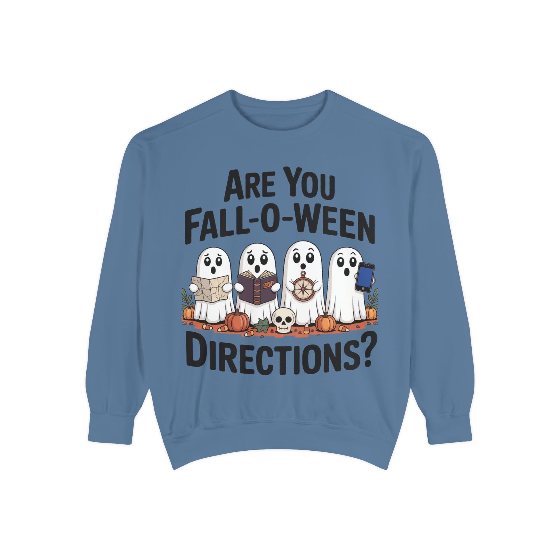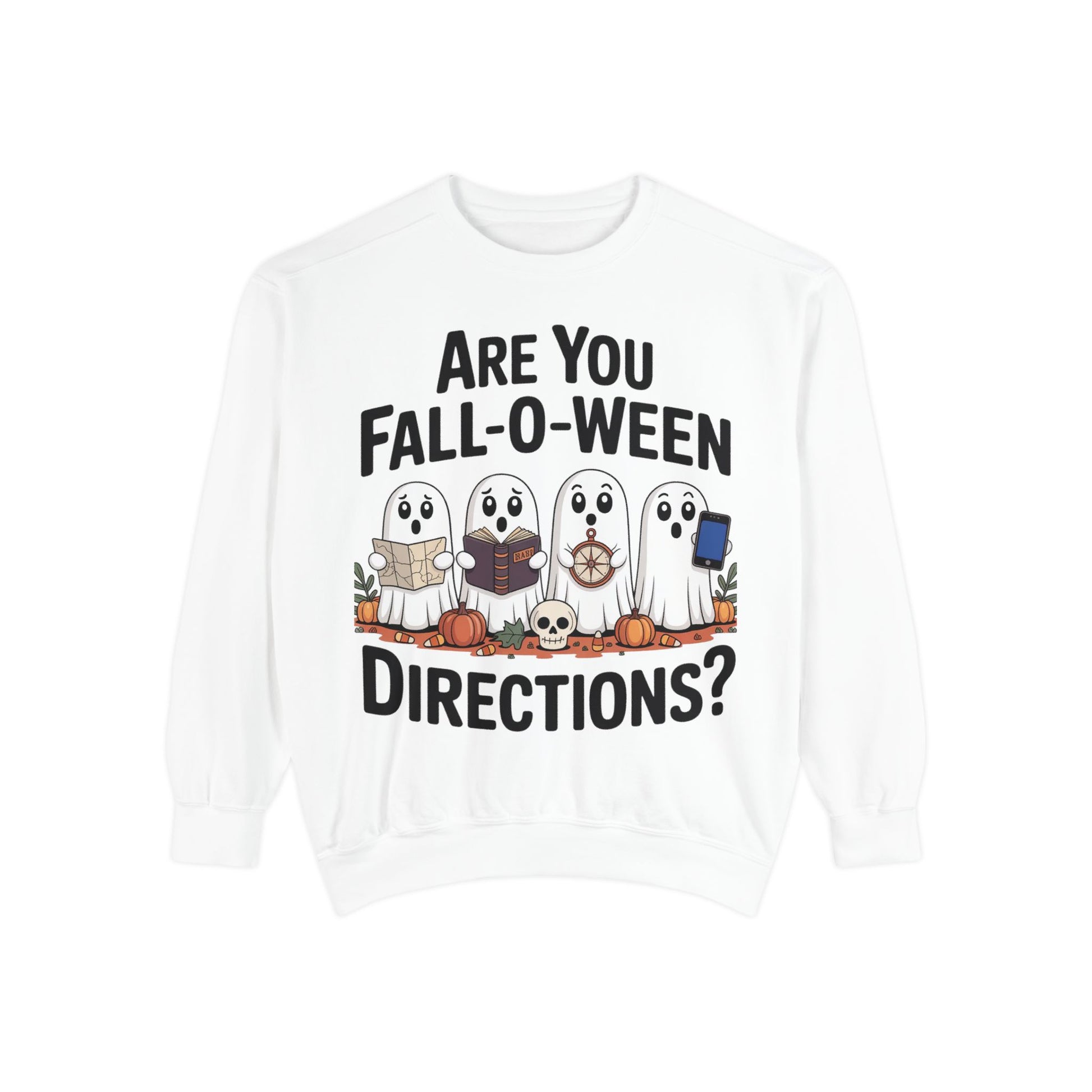 Ghostly Fall-O-Ween Sweatshirt, Unisex Garment-Dyed Pullover, Cozy Halloween Attire, Ghost Sweater, Fall Fashion, Spooky Gift