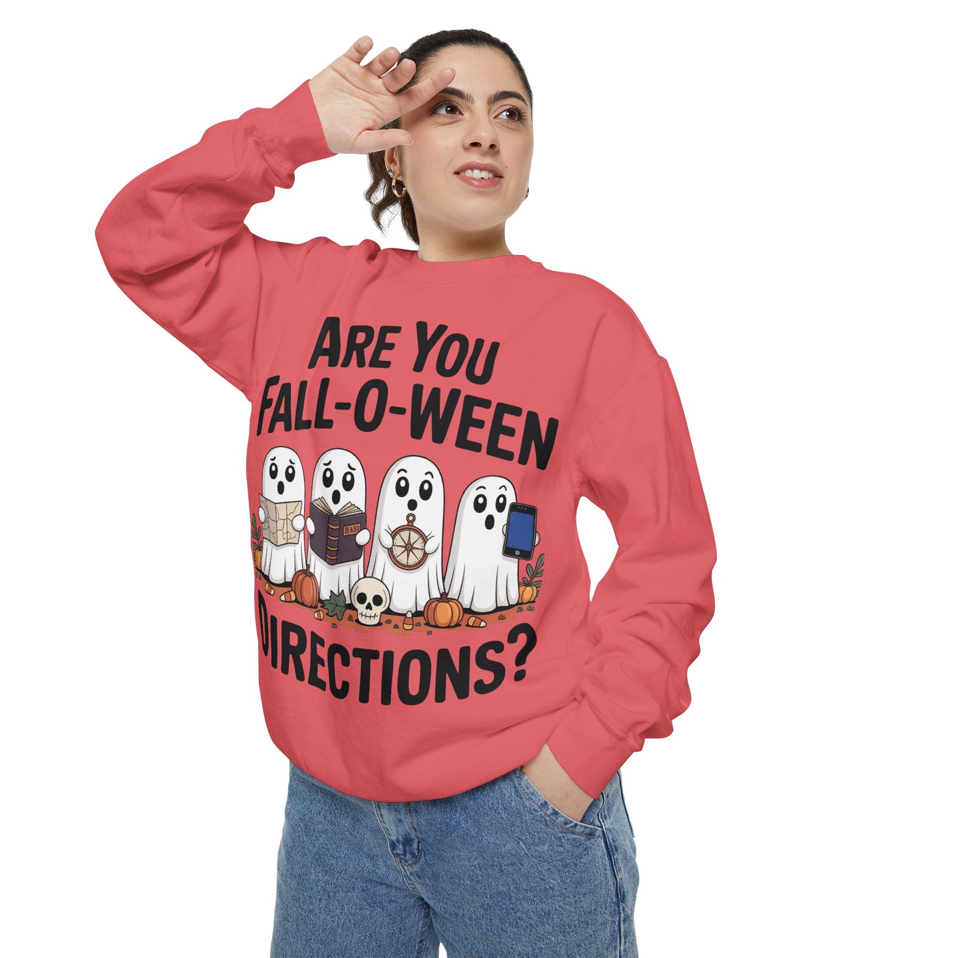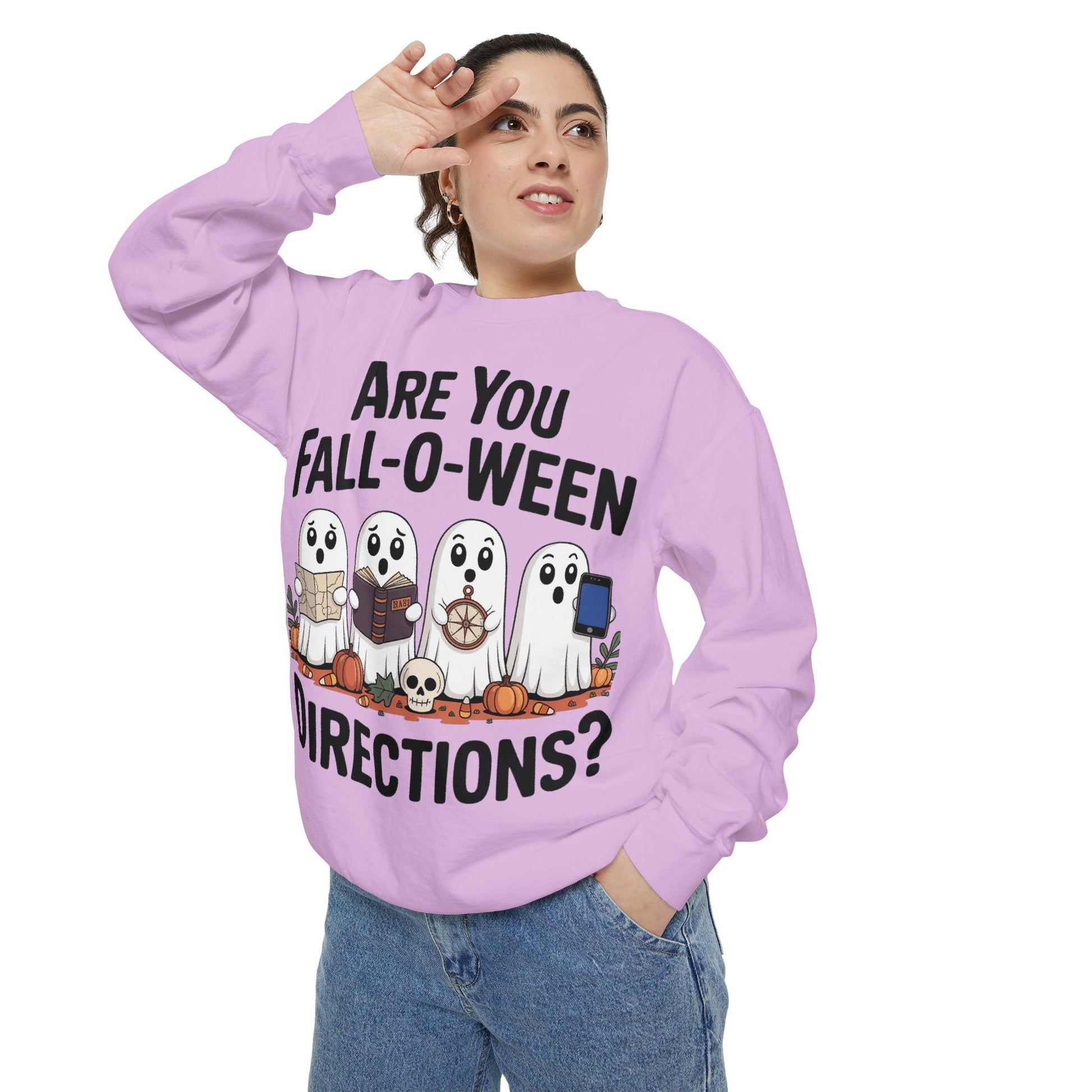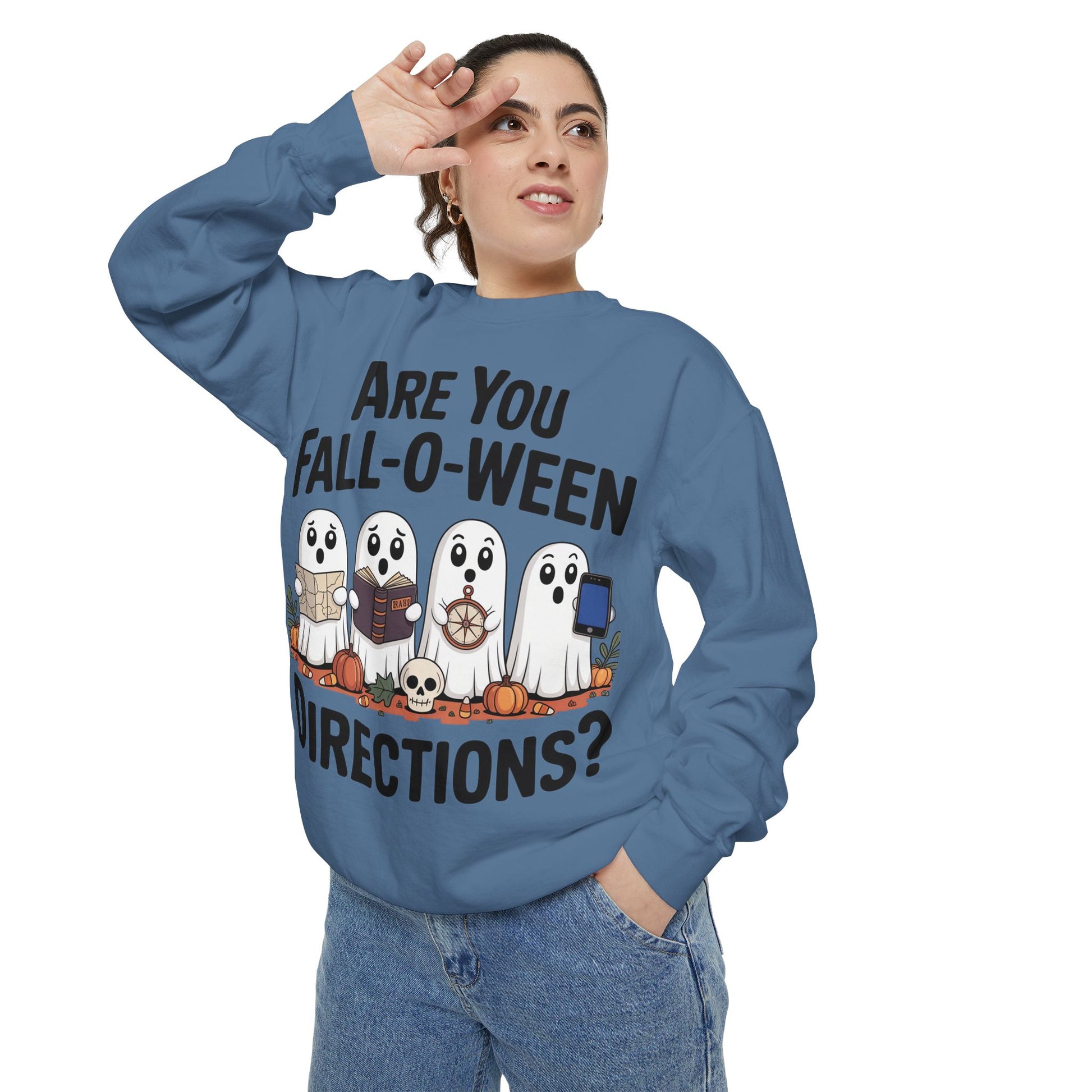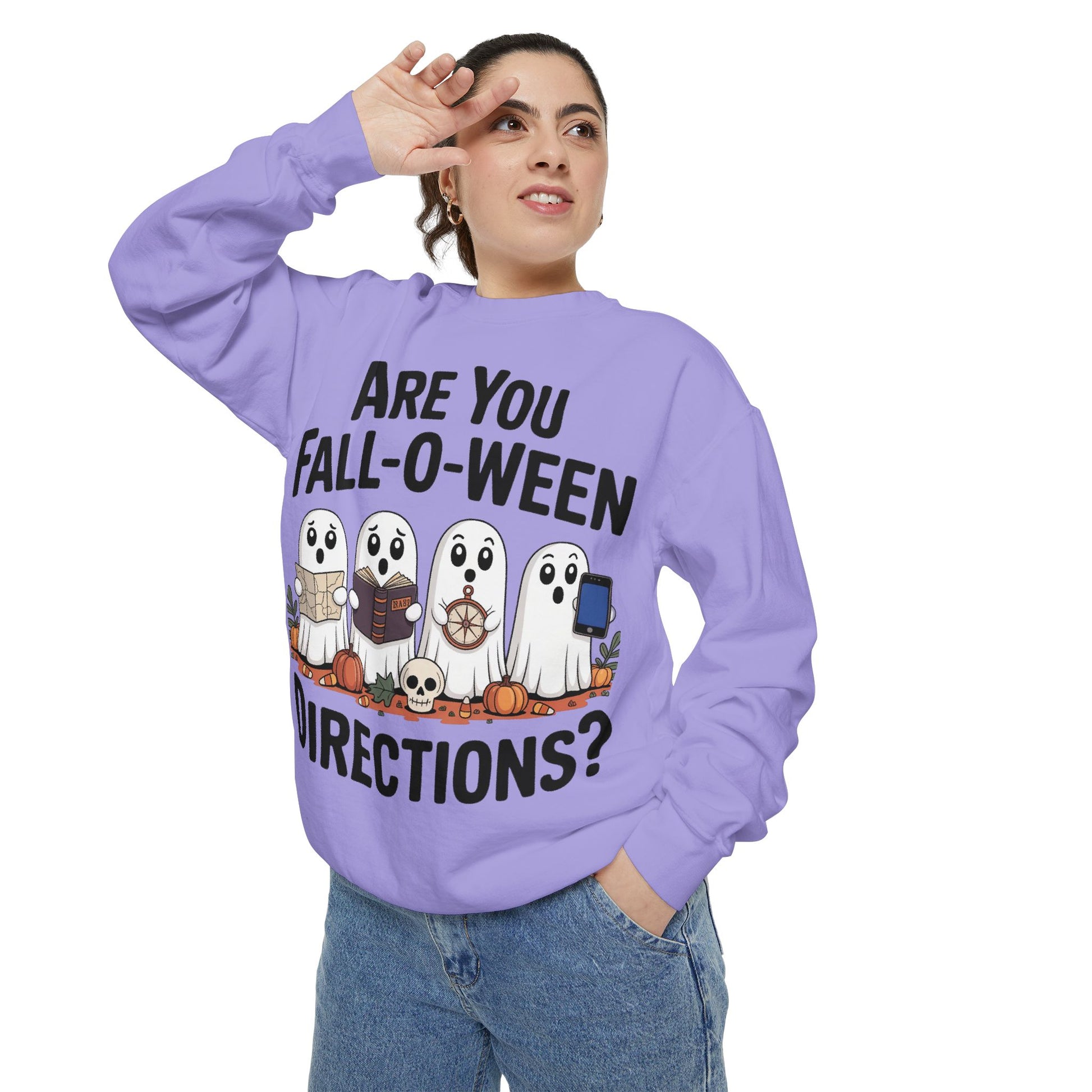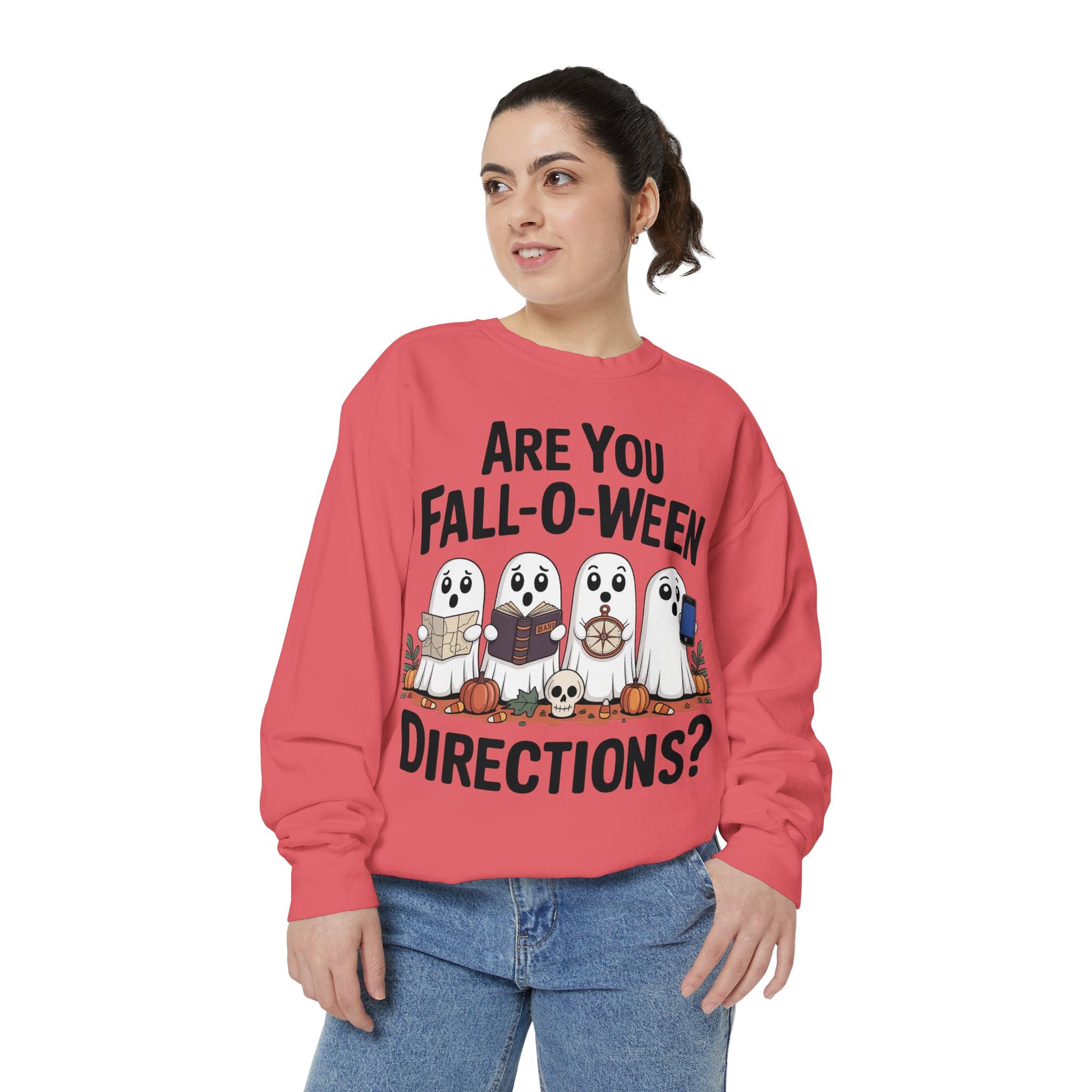 Ghostly Fall-O-Ween Sweatshirt, Unisex Garment-Dyed Pullover, Cozy Halloween Attire, Ghost Sweater, Fall Fashion, Spooky Gift